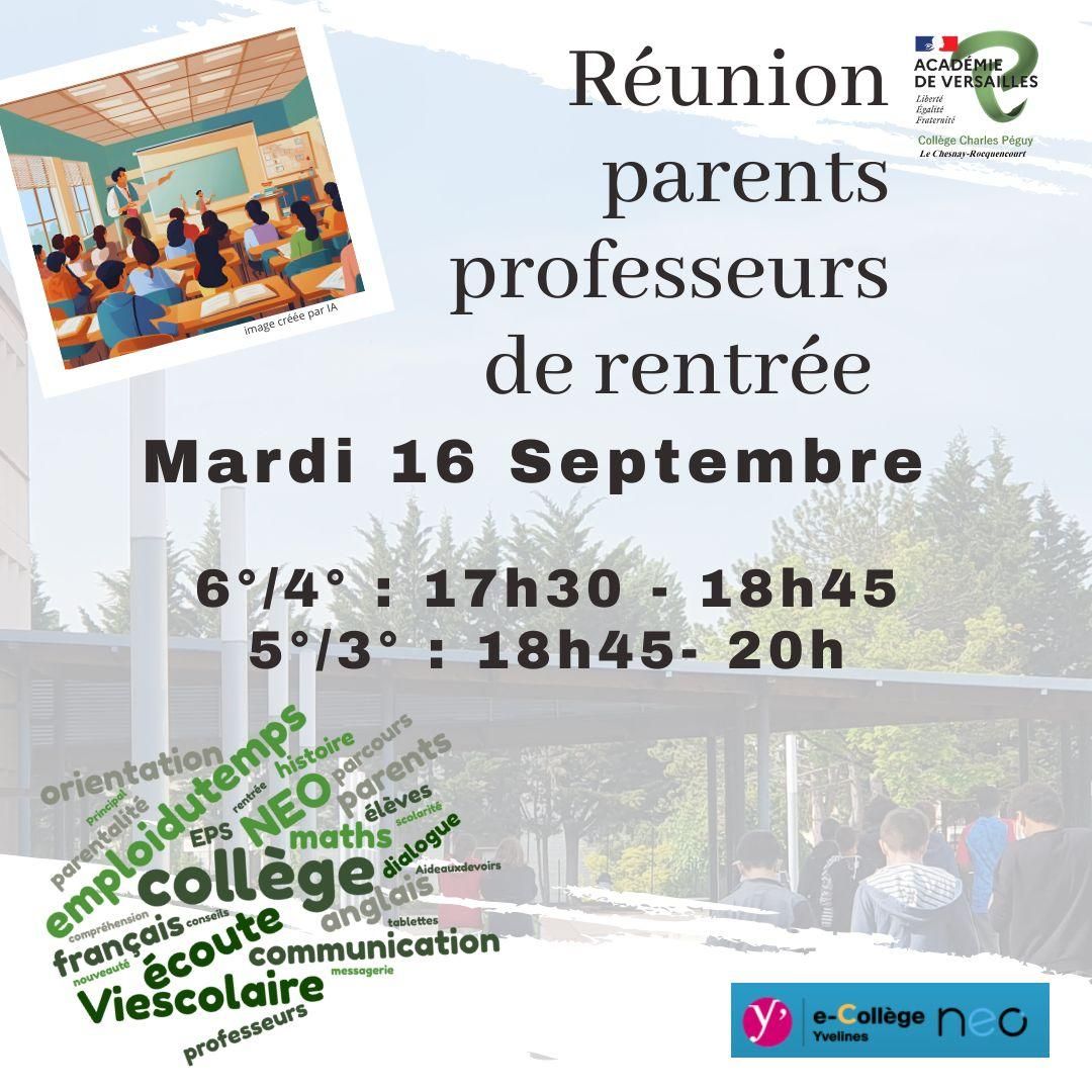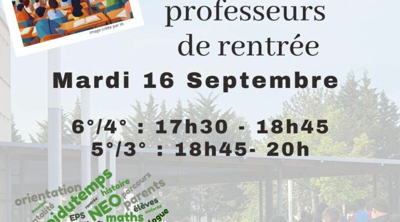 👨🏾👩👧🏽👦🏽 Réunion parents 6/4èmes Calendrier Quand : 16 septembre 2025 @ 17 h 30 min – 18 h 45 min 2025-09-16T17:30:00+02:00 2025-09-16T18:45:00+02:00 Actu
